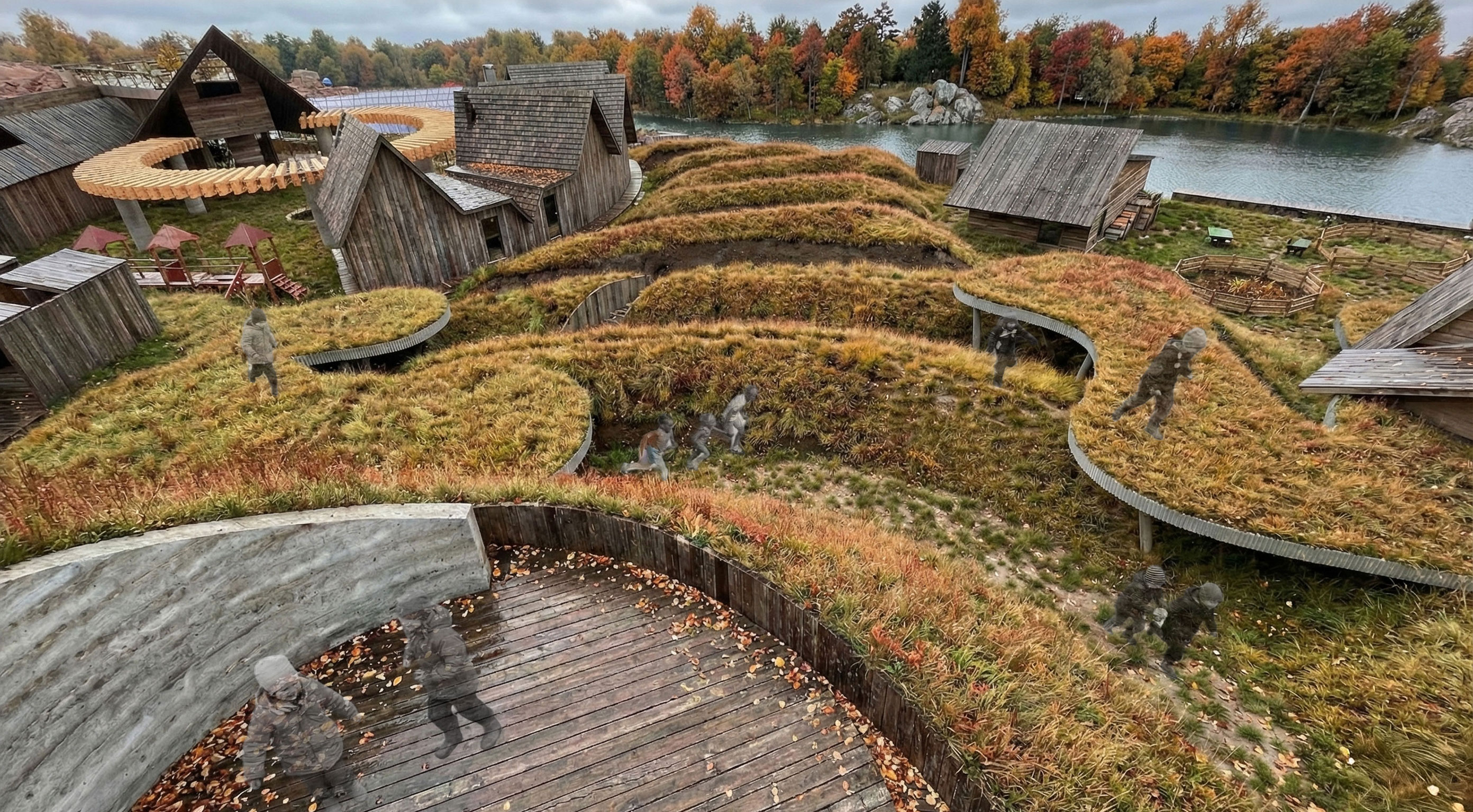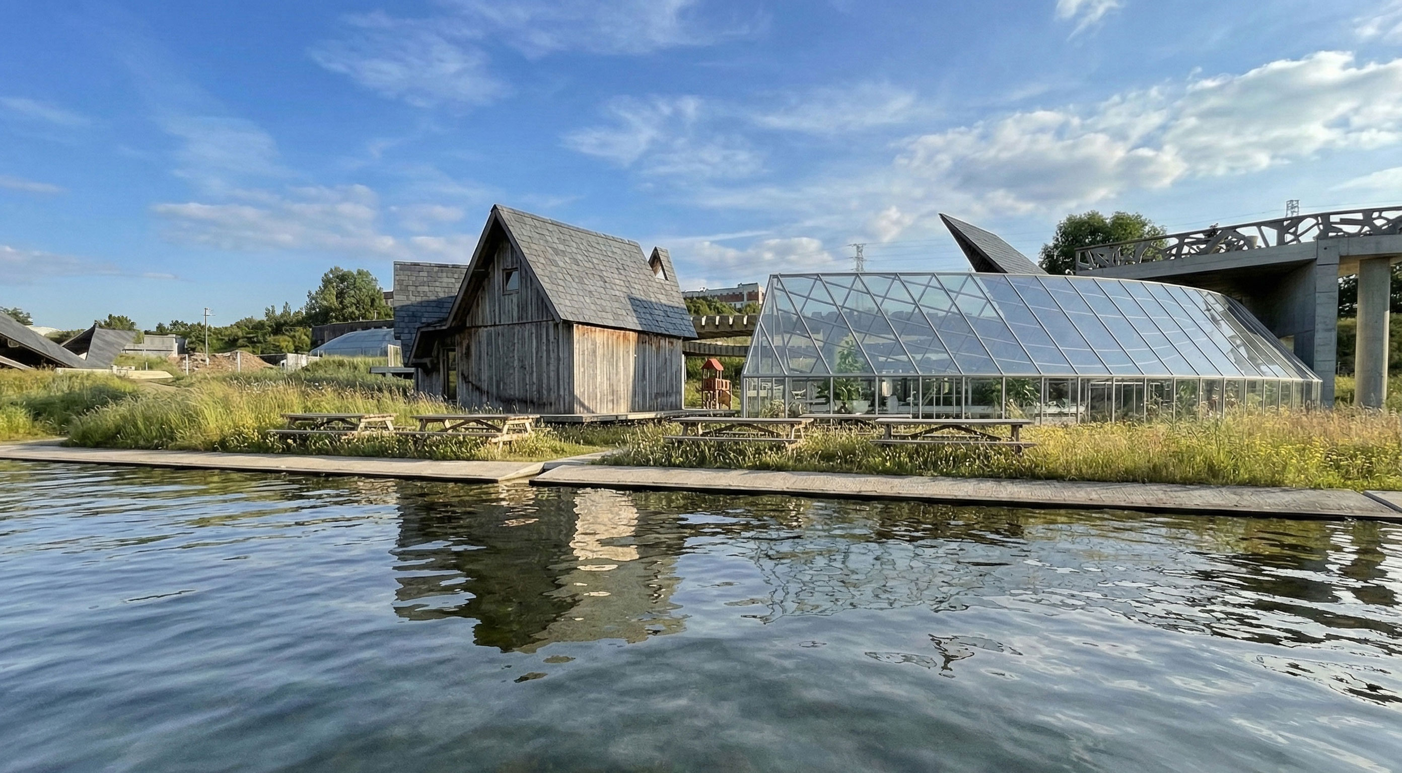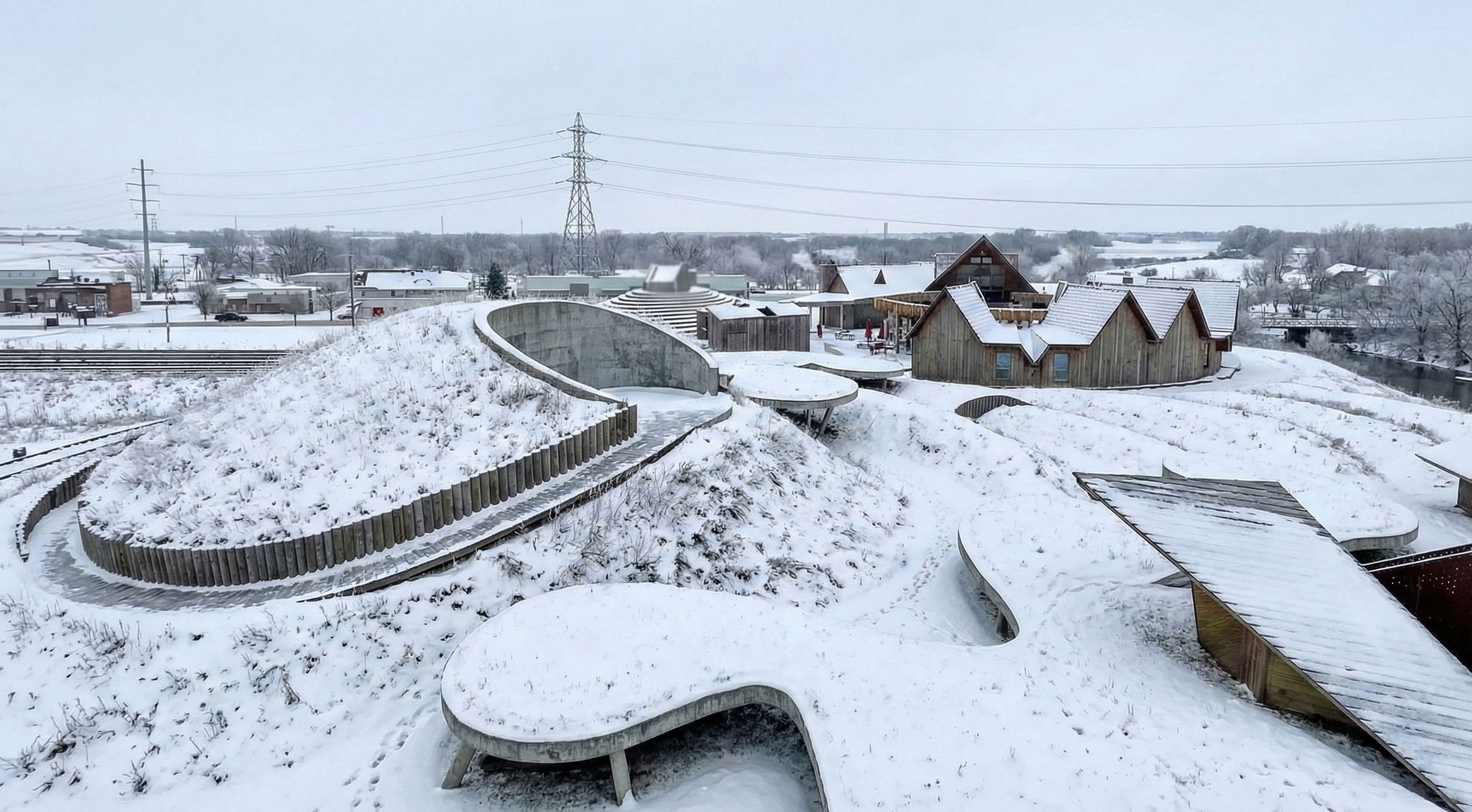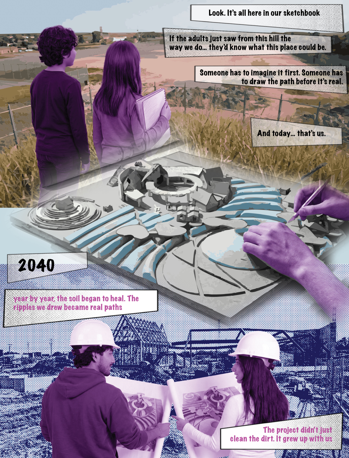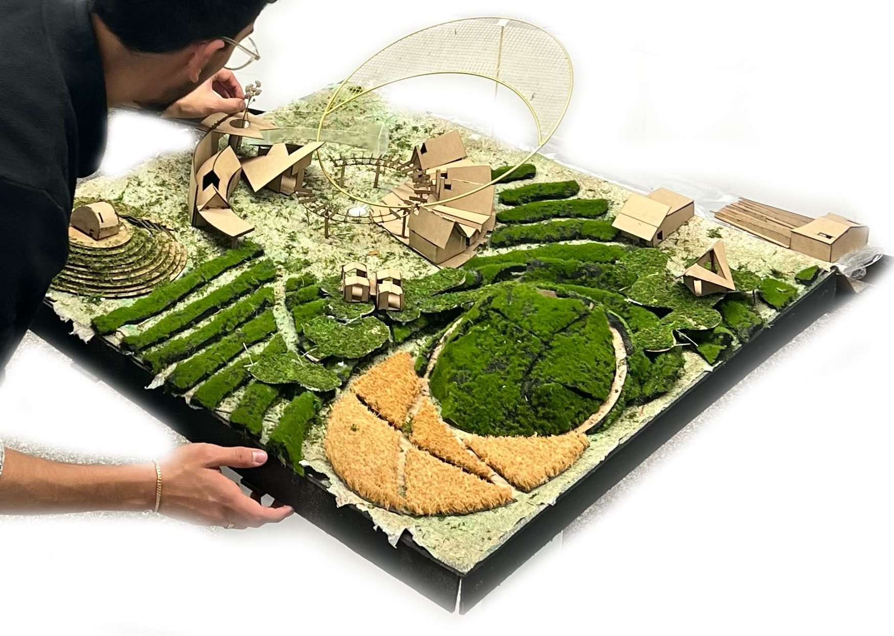 The project goal was to create a “village” for a Superfund site in East Chicago, Indiana that was affected by industrial age lead and arsenic pollution in the soil and water. This project serves as both a community lounge and a remediation center. The architecture facilitates a 100-year healing process, allowing humans to care for the land while providing habitat for non-human life. This “village” included a composition of 12 “elements with max 1,200 sq ft per element only permitted single-ridgeline roofs, specific rectangular apertures, and no double-curved surfaces. This was designed to evolve and weather over a century.